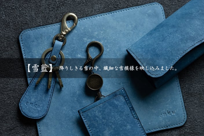 徳島のすくもで藍をたて、革を一枚一枚藍染めしてものづくりしているブランドenku(えんくう)です。 茜、刈安、季節の草花などの彩り豊かな草木染革もどうぞ。